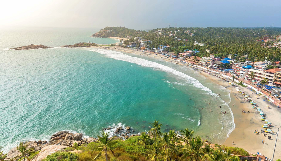 Located at the southernmost tip of India, Kanyakumari Beach is famous for its unique confluence of three water bodies—the Arabian Sea, Bay of Bengal, and Indian Ocean. The beach features rocky terrain and colorful sands, creating a striking landscape. However, swimming is not recommended due to strong currents and rocks.